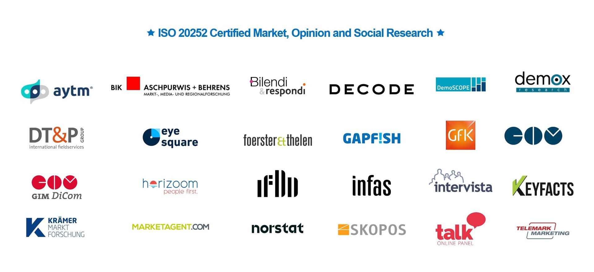 Qualitätsgerecht arbeitende Markt-, Meinungs- und Sozialforschungsinstitute können sich nach ISO 20252 als Full Service Provider oder als spezialisierte Access Panel Provider zertifizieren lassen.
